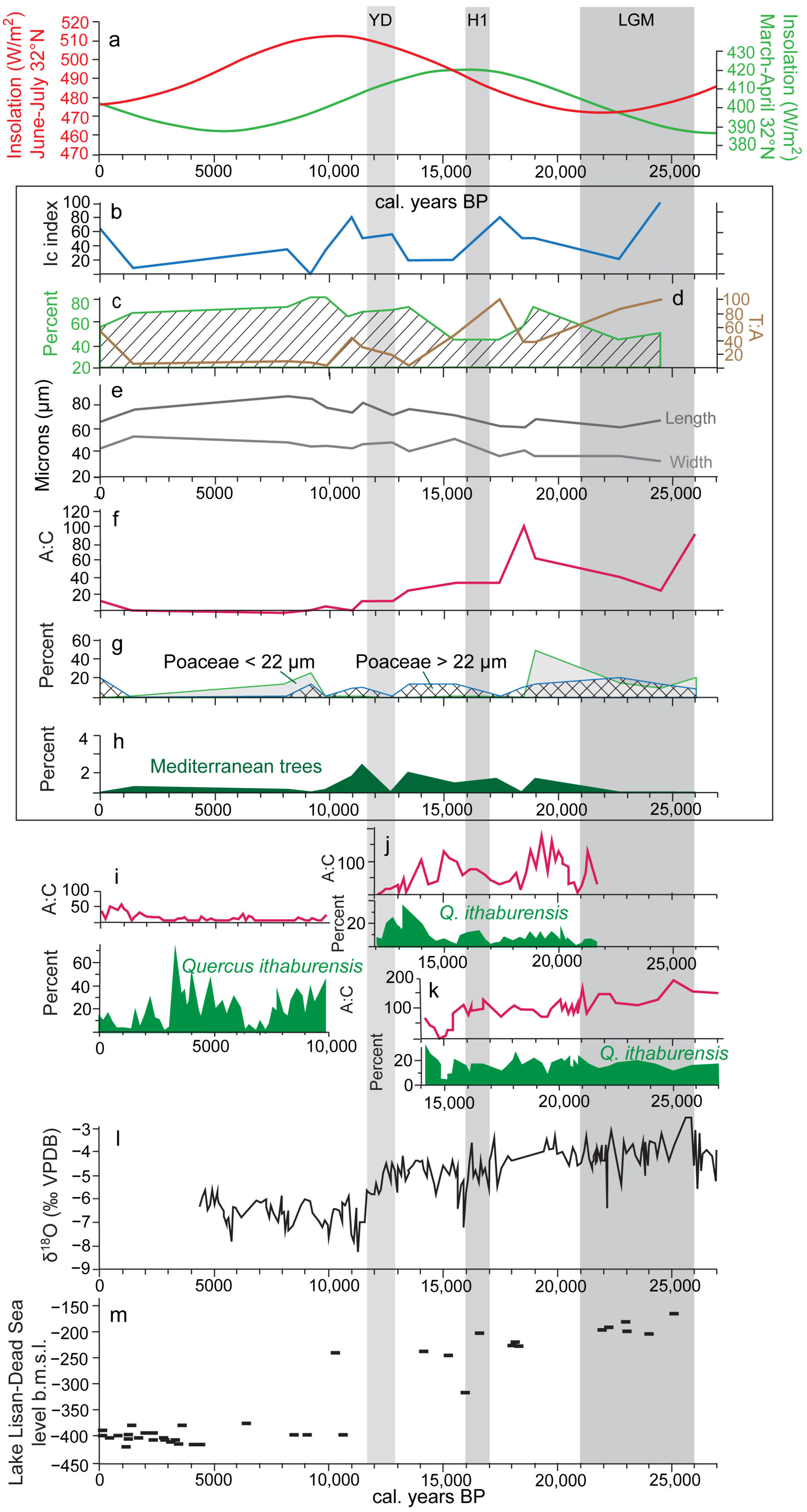 - Langgut, D.; Cheddadi, R.; Sharon, G. Climate and environmental reconstruction of the Epipaleolithic Mediterranean Levant (22.0–11.9 ka cal. BP). Quat. Sci. Rev 2021, 270, 107170. [Google Scholar] [CrossRef]