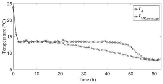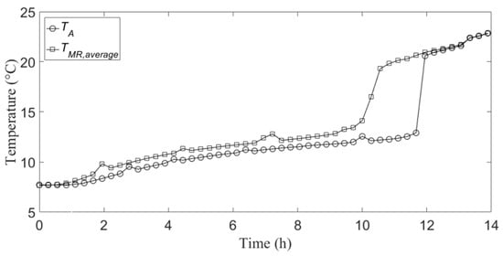 TA, and the temporal profile of the average of the temperatures relative to the mid-radius measuring points, which is indicated with