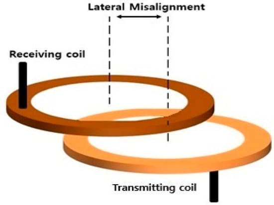 Generally, it is not easy to land a drone at a specific point on the drone station precisely. In most cases, the centroids of the transmitting and receiving coil are misaligned, as shown in Figure 5.