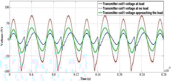 Transmitting coil 1 voltage under wireless power transmission. (For case scenario in Figure 13).