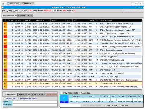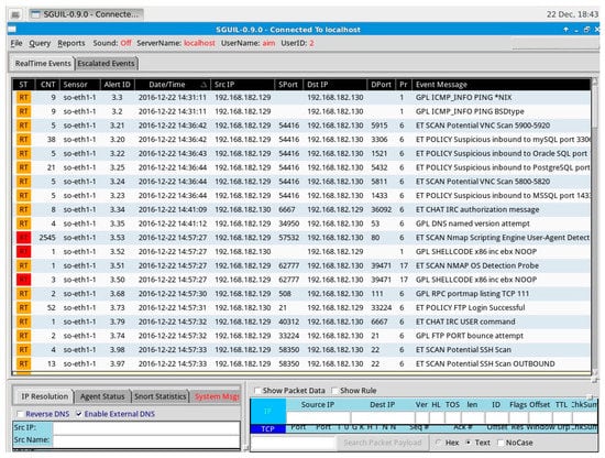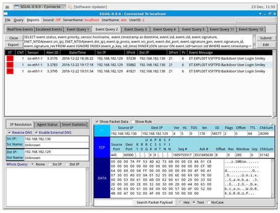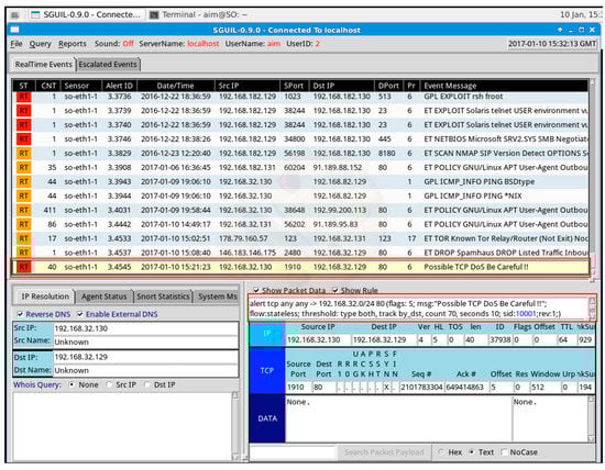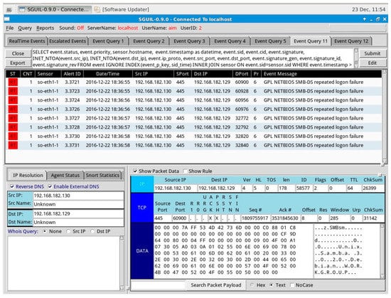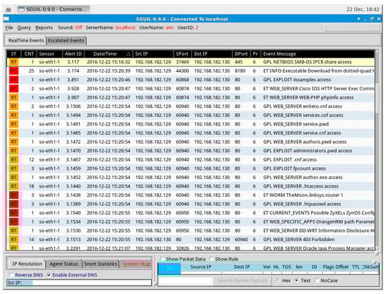 - Sguil. Sguil: The Analyst Console for Network Security Monitoring. Available online: http://bammv.github.io/sguil/index.html (accessed on 23 November 2018).