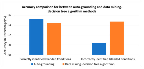 - The data mining-decision tree method has a higher overall accuracy (94.5%) when compared to the auto-grounding method (92.8%). Thus, comparing between the two, the data mining-decision tree method is the more reliable method of islanding detection.
