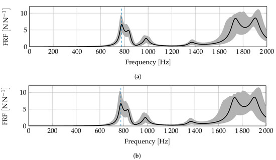 In a first step, we compare the FRF range of both morphing approaches for the 100 designs that we generated. In Figure 9 we show the FRF introduced in Figure 8 with an additional Skyline overlay. The gray Skyline indicates the lowest and highest amplitude for all 100 designs.