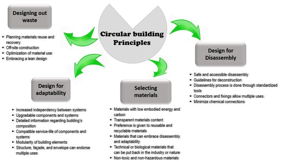 - European Commission. Circular Economy Principles for Buildings Design. Available online: https://ec.europa.eu/docsroom/documents/39984 (accessed on 21 March 2021).