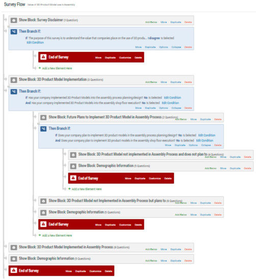 As discussed in the Materials and Methods section of this paper, potential survey candidates were screened based on the organization/industry in which they worked and their role within that organization to increase the likelihood that these individuals would have knowledge of the use of the 3D product model and how it was or was not being deployed in the assembly process in their organization. To test the effectiveness of the survey screening approach, survey respondents were asked to indicate their level of knowledge about the use of 3D product models in assembly planning, assembly design, or assembly shop floor execution. The categories and responses were as follows: very knowledgeable (6), knowledgeable (11), somewhat knowledgeable (5), not at all knowledgeable (1). With only one of the 23 respondents indicating that they were not at all knowledgeable about the use of the 3D product model in the assembly process, the survey screening approach appears to have been a success and drives greater confidence in the results described in this paper.
