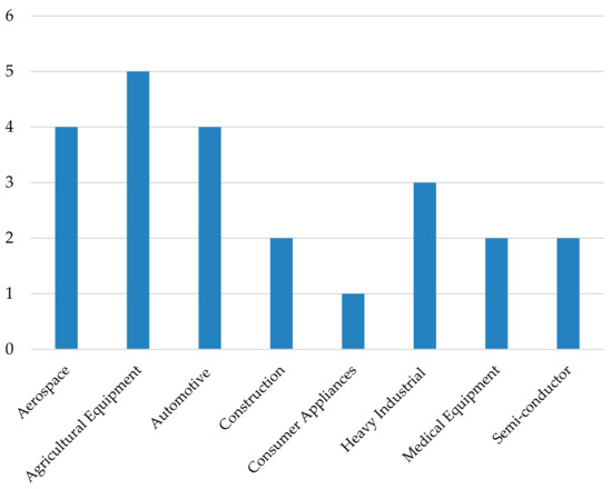 The research team started with a database of over 2700 contacts, which were filtered based on companies in applicable industries and individuals in applicable roles within those industries to 151. Of these 151, the research team found that the contact information was up to date for 85 individuals. These 85 individuals were provided with the link to take the survey on the value of the 3D product model use in the assembly process at their organization. Of the 85 individuals sent the survey, 35 responded, equating to a response rate of 41%. Note that the date between when the survey was administered and the final data were collected was approximately one month. The number of respondents in the first week was 21; in the second week, it was 8, in the third week, it was 6, and in the fourth week, it was 0. The decreasing number of respondents and the fact that by the fourth week there were 0 respondents provided the research team with the indication that the majority of all respondents who were likely to respond had, and therefore, it was a good time to collect and analyze the data. The survey software was also set up to automatically record an individual’s response after two weeks of no activity on the survey. The objective of this being that if the survey respondent had answered the majority of the questions but forgot to click submit, as an example, then the survey information would be captured and of use in the analysis. However, this approach also led to some survey responses being logged where, as an example, the survey respondent had started the survey, answered the first couple questions, and then exited the survey. In such a case, not enough data were available for analysis. Of the 35 responses, 7 responses were removed prior to the detailed analysis due to survey responses getting recorded with too few questions answered for meaningful analysis.
