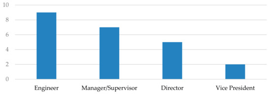 In addition to ensuring that the industries represented by the survey respondents were reflective of the population, the research team also wanted to ensure that the jobs of the survey respondents within those organizations were representative of the population. Due to the nature of organizational hierarchies, there are more engineers than engineering managers/supervisors, more managers/supervisors than directors, more directors than vice presidents, etc. When reviewing the survey respondents, as seen in Figure 8, the categorization of respondents follows this general trend, which demonstrates that the survey responses are not biased by any one job type when compared to the broader population.