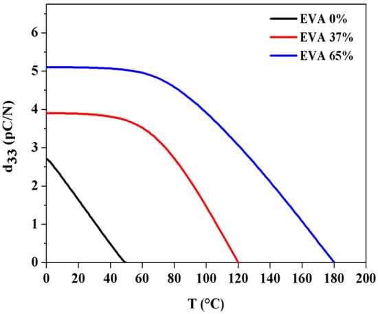The principal experimental results demonstrate that when temperature rises, the piezoelectric coefficient remains stable until it reaches a critical limit, at which point the piezoelectric constant reduces. The pores consolidate beyond this point, and the film loses its cells, as well as the local dipoles that provide the pseudo piezoelectric effect. The phase transition solid–liquid temperature is observed when the piezoelectric constant begins to decrease. Thermal depolarization shows a remarkable difference between a sample which contains charges in the defaults without pores (EVA 0%) and a sample which contains ionic dipoles with porous structure (EVA 37% and EVA 65%).