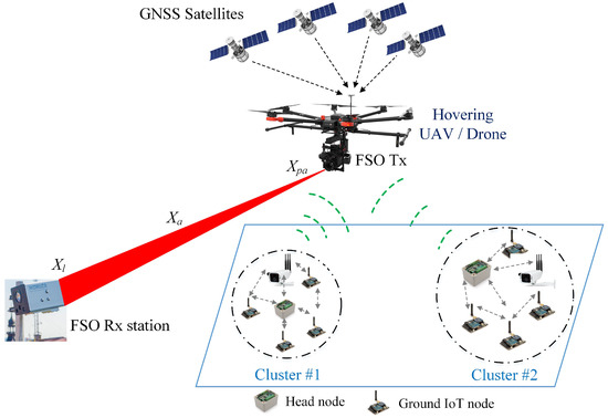 - Najafi, M.; Ajam, H.; Jamali, V.; Diamantoulakis, P.D.; Karagiannidis, G.K.; Schober, R. Statistical modeling of the FSO fronthaul channel for UAV-based communications. IEEE Trans. Commun. 2020, 68, 3720–3736. [Google Scholar] [CrossRef] [Green Version]