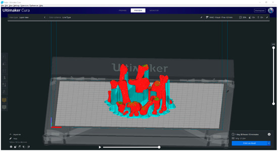 According to “The American Society for Testing and Materials” in the US (ISO/ASTM 52900), methods of 3D printing were standardized into seven groups, including the binding jetting, directed energy deposition, material extrusion, material jetting, powder bed fusion, sheet lamination, and vat photopolymerization [26,27]. The selection of the method will depend on the use and visual appearance of the replica, the properties of the materials, and the possibilities of the printer (e.g., cost, settings, print time, and volume) [28].