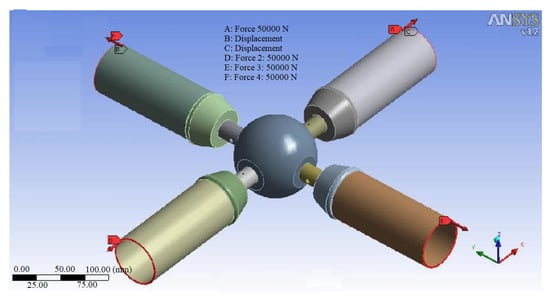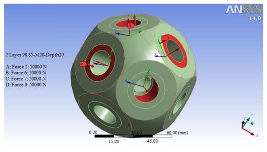 The above-mentioned ball joints underwent the axial loads of 4 and 5 tons, while considering the CK45 (1.1191) steel in accordance with standard DIN EN 10083-2:2006 [32] for the MERO ball joint, as well as the effects of the ball joints of three sizes on the level of stress, which had a decreasing trend with increase in diameter. Table 1 represents the effect of ball joint size on the yield stress level.