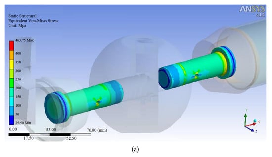 As depicted in Figure 16a, the maximum stress level in the ball joints for the small screw size of M12 is nearly independent of the ball joint sizes, and almost all of them should have the minimum yield strength of greater than 370 MPa, irrespective of the factor of safety. A similar conclusion can be drawn about the results acquired for M16 screw in Figure 16b which shows nearly minimal changes in stress levels.
