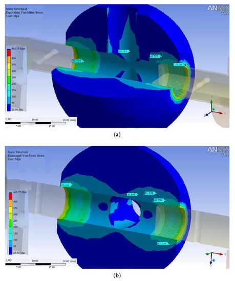 3.2. Comparing the Effect of the Ball Joint Size on the Stress Levels for Constant Screw Sizes
