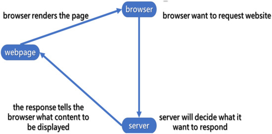 The urlopen() function is a request concept. First, the user infosurfs the browser, representing the client side, to post the request to the server, as shown in step 1 in Figure 5. In step 2, shown in Figure 5, the server side receives a request based on its content for processing and response. It will respond to the website format, which contains the html tag, after the browser receives the html tag website format to render and display for the user. All the examples are shown in Figure 5.
