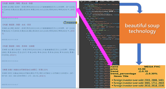As shown in Table 3, in recent times, the technique of web scraping and data crawling domain, famous studies such as the Yahoo stock service web page and Anue use ASP or AJAX methods to mine stock price information from the stock exchange.