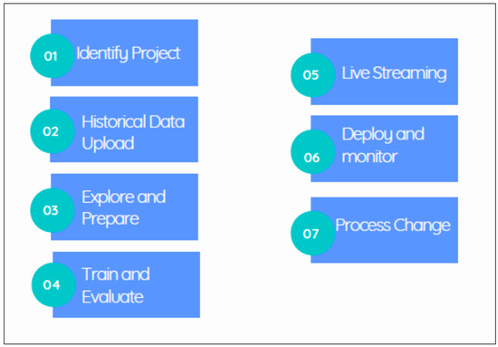 Then, the in-house historian database from OSI PI was integrated through an application programming interface (API). In this way, the data from the processes was ingested by the Canvass AI platform that was hosted in the Azure cloud, through real-time streaming. The model was productionized, and then real-time predictions began to appear. The results were monitored, and adjustments were performed. Finally, the model results returned predictions to facilitate the decisions on changes in the process to allow for its improvement. Figure 1 shows the seven-step process followed to achieve the results that allowed the optimization of the processes.