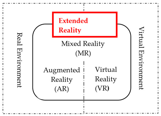 Extended reality is a deep immersion experience that generates a comprehensive, three-dimensional reality-virtual continuum through computer systems. Through Virtual Reality (VR) to provide users with a virtual environment, combined with digital overlay enhanced images in Augmented Reality (AR), and use of Mixed Reality (MR) to form three-dimensional imaging, to achieve a perfect combination of physical reality environment and virtual reality environment, as shown in Figure 1 [9]. It promotes regional innovation and opens up new visualization avenues of application. The human body is complex and mobile, moving the internal organs of the body between exhalation and inhalation [10]. Each part is a relatively independent and complex structure. During the operation, it can overlap with the patient entity, which is convenient for the surgeon to recognize and operate [11,12]. XRSG uses Expanded Reality Technology (XRT) that can create images of such sensitive images. Most important is the visual experience, which combines real and virtual human structures to create a three-dimensional, realistic medical image of the human body [13]. Past works of literature on XRT in surgery have been insufficiently discussed.