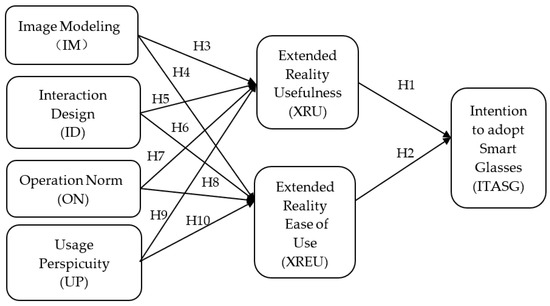However, from the point of view of theoretical development, the XRSG technique has met the needs of surgical procedures, such as trials in dermatology [14], neurosurgery [9], and urological procedures [15], but has not yet been applied to clinical procedures [16]. In this study, the acceptability and feasibility of the use of XRSG for surgical operations by medical specialists were tested. The XRT was studied using the Technology Acceptance Model (TAM) to explore people’s acceptance of innovation through their perception of its usefulness and ease of use [17]. It also requires the acceptance and use of subjective consciousness leading to behavioral change suitable for the Theory of Planned Behavior (TPB) through the medical expert’s experience of the procedure [18]. The current study proposes a new theoretical framework with a combination of TAM and TPB, the Technology Behavior Model (TBM). In this model, extended reality technology is added to make it more suitable for this study. Currently, XRSG is mainly used to improve visual effects and is not as popular as cell phones. Therefore, people’s subjective perceptions are the basis of their behaviors. In this study, the triangle mixed research method was used to collect data through an online Google questionnaire and conduct statistical analysis on the data using SmartPLS. PLS-SEM has a multiplanar structure and sophisticated model manipulation software that allows for multivariate mixed cross-tabulation analysis, which facilitates the study of the data [19]. The structure of this paper is as follows. First, the theory and hypotheses of this study are presented by examining the previous literature. The second part presents the research methodology, data analysis, and conclusions of this study. Third, the contributions of this study are discussed, including the proposed new technical-behavioral model for medical image modeling by using Extended Reality Technology, which improves the Usage Perspicuity, standardizes the operation of medical experts while allowing the use of multiple interaction methods for viewing images and data, and avoids cross-contamination in the surgical environment. This provides a better patient-to-surgical experience, ensures a successful surgery, and reduces surgery time. This paper ends with the conclusion section, to confirm the acceptance and use of smart glasses surgery by medical experts and to provide an outlook for after research.