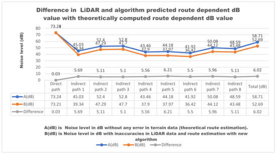 4.2.1. Deviations in New Algorithm Generated Routes, Which Are Extracted Using LiDAR Data Are Compared with Routes (Having no Error) Extracted Theoretically. Deviations Are Related in Terms of Predicted Noise Levels