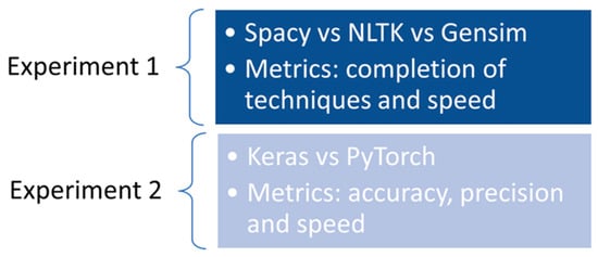 There were three Python libraries considered for ascertaining the most suitable library for this research problem: NLTK, Spacy and Gensim. As accuracy and precision could not be used as performance metrics for the NLP experiment, two factors were considered when electing the most suitable Python library for NLP-based tasks. The first factor was how many of the chosen NLP techniques each Python library could complete, and the second factor was how quickly the techniques could be applied to the dataset.