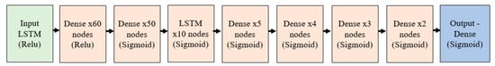 As previously highlighted, RNN algorithms have solely been tested for classifying the text-based datasets as Vinayakumar et al. [45] state that RNN has obtained good performance in artificial intelligence tasks including natural language processing. LSTM was the first RNN-based algorithm that was tested, producing an accuracy of 98% and precision of 0.98 consistently throughout the five runs. Even when the model was changed to resemble the number of layers defined in Figure 2, the accuracy and precision remained the same. Likewise, Simple RNN achieved an accuracy of 98% and a precision of 0.98. As both algorithms produced high accuracies and precisions, another text-based dataset was used to determine the reliability of the results. The Spam Email dataset from Kaggle by Qureshi [26] was split into a training and testing dataset and then the training dataset was used. As this second dataset was larger, only 5 epochs were used but both Simple RNN and LSTM still achieved an accuracy of 99.89% and a precision of 0.998883. Both algorithms were combined to understand their value together, but high accuracies and precisions were still achieved. As LSTM has appeared more in similar research, this algorithm was chosen for classifying text-based datasets.