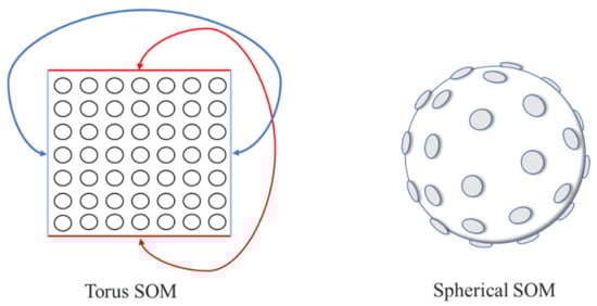 - Masahiro, I.; Tsutomu, M.; Hiroshi, M. The characteristics of the torus Self Organizing Map. In Proceedings of the of 6th International Conference on Soft Computing, San Jose, CA, USA, 11–14 October 2000. [Google Scholar]