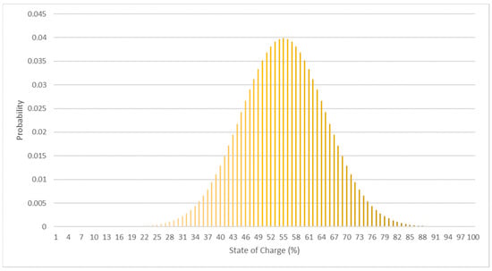 The probability arriving SoC of the PEVs was estimated as in []. Figure 3 depicts the probability of the arriving PEV’s SoC.