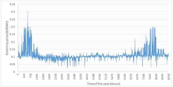 Table 2 lists the input data of the optimization problem. Further than that, the PV degradation every year is considered 0.6% [] and the efficiency of the DC/AC PV inverter is assumed to be 97.5%.
