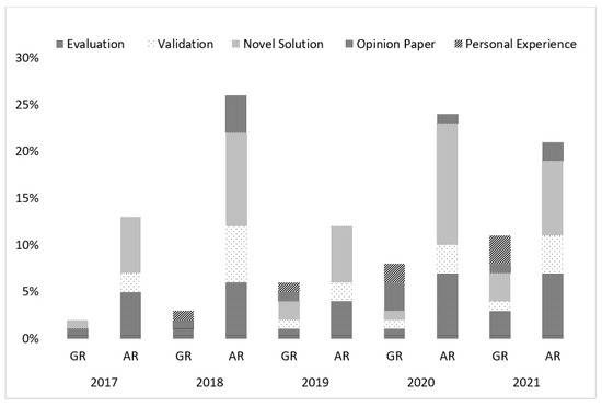 Evaluation, validation, novel research, opinion papers, and individual experience are considered for inclusion in the final selections from academia and the GLR. The evaluative study focuses on analyzing an issue in practice or the adoption of an approach in practice. When a solution proposal has not yet been implemented, validation research examines its properties. A complete validation of the novel solution is not required, which suggests an alternative approach and argues for its validity. An opinion paper is a piece of writing that expresses the writer’s thoughts on a particular topic. Personal experience articles focus on “what” rather than “why”.