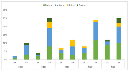 Table 2 lists the excellency criteria used to evaluate each research. With the following question: “Is this excellency factor accomplished?”, we used a five-point scale to rate each article (strongly agree, agree, neither agree nor disagree, disagree, and strongly disagree). Some perspectives were provided on the distinctions between scholarly (white) and industrial (grey) literature from the excellency evaluation of the data source. Figure 2 contains the findings of the excellency evaluation for academic and GLR for each standard as a proportion of the relevant overall review of papers. The majority of all ALR articles (91%) explicitly explained their study objective; each one of them categorized the addressed security breaches openly. Additionally, the majority of them (93%) described quite explicitly the security feature offered. Sixty-seven percent of GLR articles are compiled on trusted web pages, but only a portion of the remainder (17%) are not dated. Moreover, around half of the articles (49%) offer background, and 2/3 (67%) analyze the problem discussed by their security mechanism.
