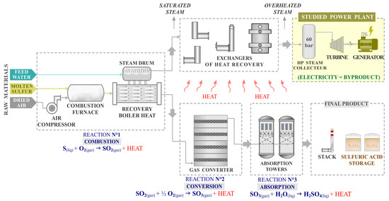 The application considered is an industrial process in a thermal power plant for the production of electrical energy, which is associated with a sulfuric acid production line, as presented in (Figure 1).