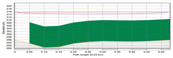 The installed device includes an indoor unit (IDU), which has the role of modulator/demodulator of the signals, and an outdoor unit (ODU), which transmits and receives the microwave signals. The link design was performed using pathloss 5.0 [25] and ITU-R rain Zone K, 66.26 mm/h inputs [26]. The inputs are provided below: