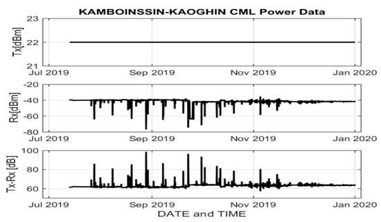 Transmitted power, received power, and attenuation of the KAMBOINSSIN-KAOGHIN link.
