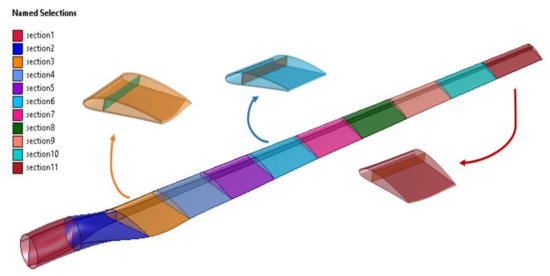 3D model of the composite blade with 10 sections.