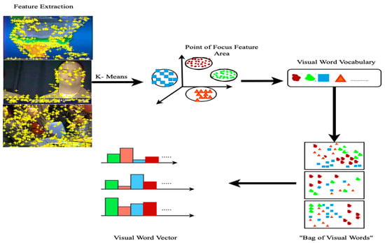 Figure 8). This is carried out by extracting significant aspects from the images, putting related features together, and then representing the images with a set of visual words. The recurrence of every visual word linked with the image in overall visual words is used to compute the histogram.