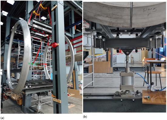 The adopted pneumatic system, i.e., based on the Airworks CQ 200 × 50 actuator, which had to generate forces up to about 21 kN, is a sufficient system. Appropriate selection of the piston diameter, which translates into the selection of the actuator, contributed to the possibility of generating loads with a frequency of about 2 Hz. The designed system could generate higher load frequencies, but the elastic response of the structure would be too slow, which would translate into a changed average value in the sinusoidal load, which would make the tests incompatible with the EN 13796-3 standard.