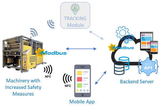 37], both machinery prototypes use the Modbus TCP/IP Protocol and, act as “Client” devices. Nonetheless, in the master/client architecture of MODBUS TCP/IP protocol, the other fundamental role is the master. In the proposed implementation, this role is played by the Backend Server that was therefore designed and implemented as a modular component made by different modules. One of the modules is dedicated to the Modbus protocol itself: it is responsible for accepting requests and status Information from the machinery. Then, there is a module dedicated to each duty presented in the previous section such as (a) allow and monitor the de-energization procedures by supporting operators, supervisors and administrators in performing all the de-energizing operations in the right way, (b) support the system during the re-energization process and during test phases, (c) guarantee, through a dedicated innovative separate mode selector, workers safety during maintenance.