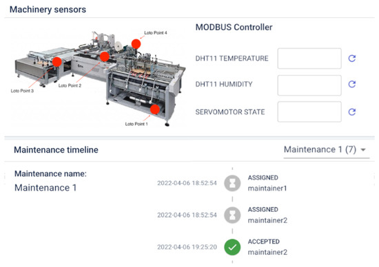Let us suppose that an administrator noticed some troubles in the normal operations of a machinery and scheduled a maintenance intervention for the operator named Andrea. Therefore, on a normal working day, Andrea arrives at the industrial plant and, after wearing all the safety clothes, he takes his smartphone, and he finds a notification saying that a maintenance intervention was assigned to him. Consequently, he opens the dedicated application and accept the assignment. After that, the application starts to guide him in the maintenance procedure. The first step is to reach the machinery and demonstrate his presence near a LOTO point, the one in which he can de-energize the machinery. So, when he is near the LOTO point, the system recognizes his presence through the continuous monitoring performed by dedicated sensors and asks him to move his smartphone near a dedicated sensor. When the presence of Andrea is verified, the system communicates with the machinery and, after some verifications, allows and suggests to Andrea to de-energize the machinery. Then, Andrea performs the suggested actions, and, after some other verification of the system, Andrea will be allowed to end the first step through a dedicated button in the app. Afterward, the system will suggest Andrea to go to the next step, and by following steps similar to the previous ones, Andrea is guided in the exploitation of the second maintenance step. The procedure continues until Andrea successfully accomplishes all the steps and presses the button to conclude the procedure (de-energization included).