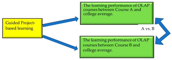 - The number of students in courses A and B is, respectively, 20 and 14. The students in those courses are university students with jobs. Subject to the limitation of student numbers, it is not feasible to execute experimental group and control group analysis for every course within the same school year. The research can only assume that the college average score of questionnaires is equal to the score of the general learning approach for the comparison between project-based learning and the general learning approach.