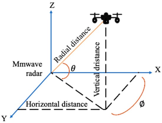 The authors proposed a novel drone-localization and activity-classification method using vertically oriented mmWave radar antennas to measure the elevation angle of the drone from the ground station in [32]. The measured radial distance and elevation angle were used to estimate the height of the drone and the horizontal distance from the radar station. A machine learning model was used to classify the drone’s activity based on micro-Doppler signatures extracted from radar measurements taken in an outdoor environment.