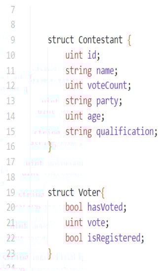 The Ethereum blockchain is based on an algorithm called Proof of Work (PoW), which ensures that the transactions on the blockchain are secure and transparent. This consensus algorithm ensures that the transactions on the blockchain are irreversible and tamper-proof. Figure 5 has code of block structure. The next step in implementing the back-end module is creating the necessary Solidity functions to handle the voting process. These functions will add candidates, create elections, register voters, and count votes. The parts will be programmed in Solidity and deployed on the Ethereum blockchain. One of the key advantages of using a blockchain-based system for voting is that it provides transparency and security. The blockchain ensures that all transactions are secure and tamper-proof, allowing for a transparent and auditable voting process. Since the data on the blockchain is decentralized and distributed across multiple nodes, it is difficult for anyone to manipulate the data or hack the system. The next step is to test the back-end module once the smart contracts and functions are defined and programmed. This involves running various test cases to ensure the system functions as expected. The testing will cover different scenarios, including adding candidates, creating elections, registering voters, and casting votes. The testing will also cover strategies related to security and performance, ensuring that the system is secure and efficient.