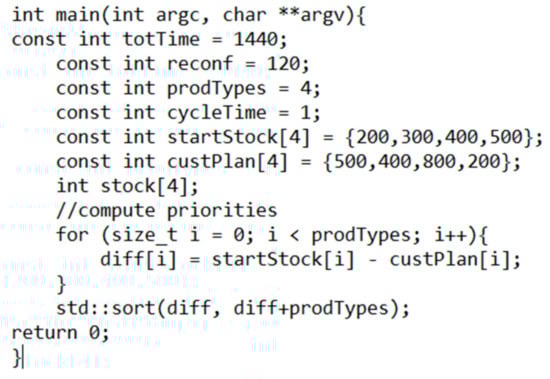 The algorithm was applied within the SW module for production planning. An example of the algorithm part is shown in Figure 2.