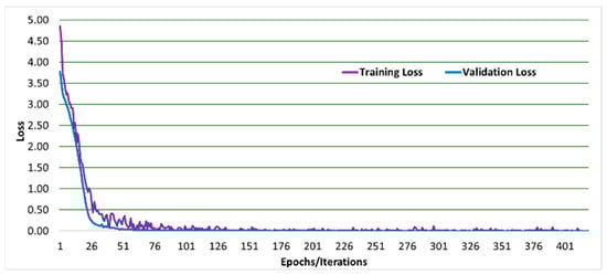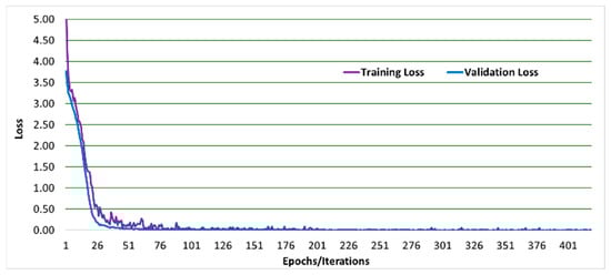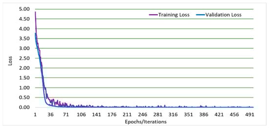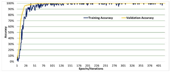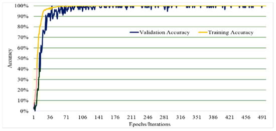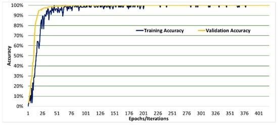 Figure 5, Figure 6, Figure 7, Figure 8, Figure 9, and Figure 10 show a comparison of the training and testing validation accuracies for VGG19, VGG16, DenseNet, AlexNet, GoogleNet, and LeNet, respectively. The comparison shows that both training and testing validation accuracies approach 100% as expected. These results indicate that the overfitting and the under-fitting problems were accounted for in this research with no under-fitting or overfitting problems reported. This is further proven and shown in Figure 11, Figure 12, Figure 13, Figure 14, Figure 15, and Figure 16 which show the comparison of the training and testing validation losses for VGG19. VGG16. DenseNet, AlexNet, GoogleNet, and LeNet, respectively. The comparison shows that both training and testing validation losses approached zero as expected.
