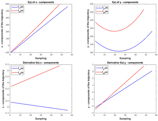 where t represents the sampling. Hence, we take, as an example, defining a second-order polynomial in such a way that the representative parametric functions of the trajectory are as follows: y . These were calculated using the least squares method, a simple and well-established method in the literature.