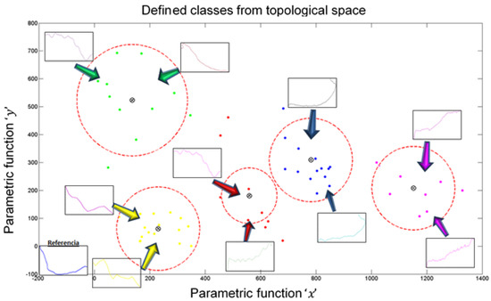 Each of the trajectories stored in the data repository represents points in the two-dimensional space that can be characterized with a small set of parameters, that is, they can be defined by a representative function, with which the analysis of the trajectories can be performed on the functions and not on the total data that make up each of the trajectories. For this purpose, the discrete points of a trajectory can be modeled with a continuous parametric set of functions with t parameters and m independent components of the trajectory.
