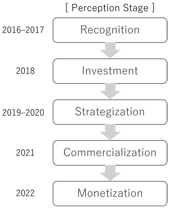 Future research should be conducted on the reversibility of the five-stage model. By reversibility, we mean the possibility that firms might regress to earlier stages in the model under certain conditions, such as market disruptions or internal strategic shifts. In our study, the change in perceptions of adoption is linear. However, when the perspective is more micro, the stages may return. In strategic management theory, three approaches that do not fall under the linear model have also been proposed: dynamic capability theory [55], lean startup [56], and game theory-based strategies [57]. Therefore, a theoretical investigation is warranted into whether our model is reversible and, if so, under what conditions it is reversible. Such research could offer valuable insights into the dynamic nature of strategic decision making in rapidly evolving technological landscapes.