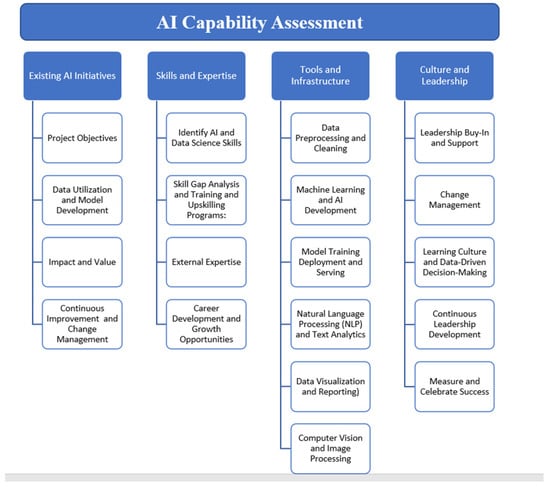 This paper delves into a fundamental phase of AI-based digital transformation: evaluating an organization’s existing state. The primary objective of this research is to offer a systematic and comprehensive approach for assessing an organization’s readiness for AI adoption. By thoroughly examining processes, current technology infrastructure, data management capabilities, and overall organizational preparedness for AI integration [19], this study aims to identify gaps and constraints that might impede the successful implementation of AI solutions [20]. Special attention will be given to evaluating data assets, data quality, and data accessibility, which are essential foundations for effective AI-based initiatives [21].