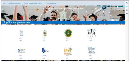The architecture of the proposed system includes two types of recommendations that aim to enhance the student counseling experience. The first type of recommendation is prominently displayed on the application’s home page and is especially useful in addressing the “cold start” problem [34]. This issue arises when a newly registered user has no existing information in the system and is unaware of the range of available universities. In such cases, students can explore the most popular universities based on the searches and preferences of their peers.