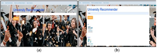 As indicated in Figure 6 and Table 3, the system allows students to enter their academic scores and field of study to determine the probability of their admission to universities. Using a content-based filtering approach, the system also suggests five institutions with similar features to the student’s preferred university [65].