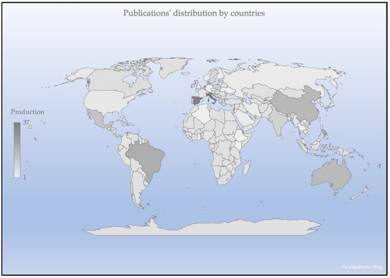 In Figure 5, it is possible to visualise the distribution of the publications by country.